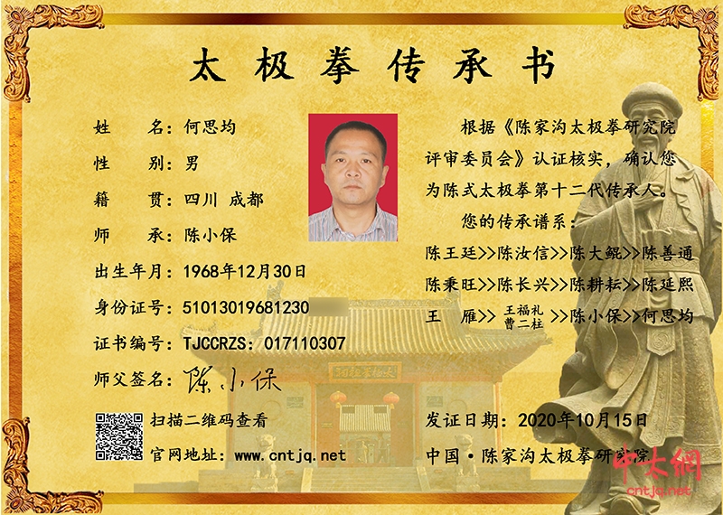 何思均 男 四川成都 师承:陈小保 TJCCRZS:017110307