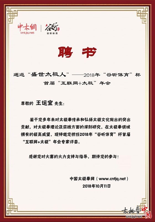 发起人及总教练:王运宜,陈家沟陈照森大师入室弟子,太极名家,陈照森太极拳研究总会会长,运城市太极拳协会技术总监,运城市太极拳技术领军人物。历任陈家沟陈照森太极拳名家大讲堂、高级培训班教练组组长。自幼习武,90年代初,已经取得全国形意拳大赛和国际太极拳及太极推手大赛冠军,为求武学真谛,隐退运城武林之外,常年奔赴陈家沟潜心研究和修炼太极拳技艺和内功诸法,三十余载功潜周身,艺有所成,众弟子多次在各级大赛中均取得骄人成绩,并被长治、滑县等太极拳研究会聘为名誉会长、技术总监等职务。