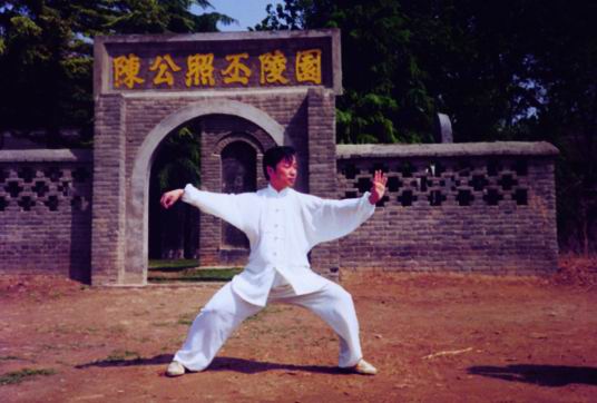 这就是我的师父,为我全面继承陈氏家学,他将自己的弟子介绍给陈家沟最好的老师。就这样,四下陈家沟,师父传授了太极十三杆,陈永利老师传授了太极双刀,然而使我受益最大的,是师父授我的推手技巧,并对太极散手有了新的体会。(下图:我十分敬仰陈照丕公,每次去陈家沟我都要到陵园凭吊、练拳,他是当代继往开来的太极拳宗师 )
