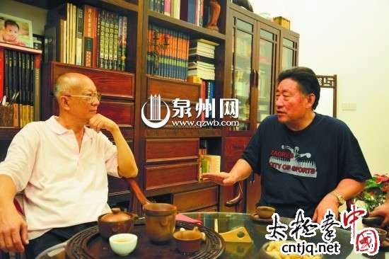 一杯清茶,促膝论剑。谈笑间展开了传奇般的武林画卷。16日晚,陈小旺先生造访周焜民先生,一见如故。太极拳和南少林五祖拳的国家级非物质文化遗产代表性传承人首度聚首,在泉畅谈中华武术。