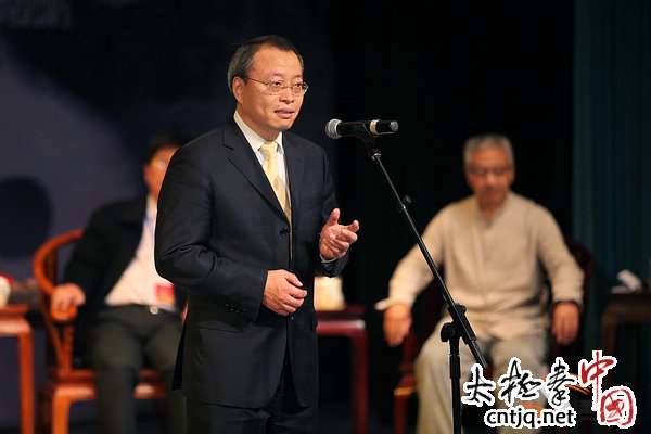 国家体育总局武术运动管理中心副主任、中国武术协会副主席陈国荣致词。他说,太极拳最完美、最深刻地诠释了太极文化的阴阳哲学,这次名家论坛一定能够对太极拳的推广起到积极的推动作用。