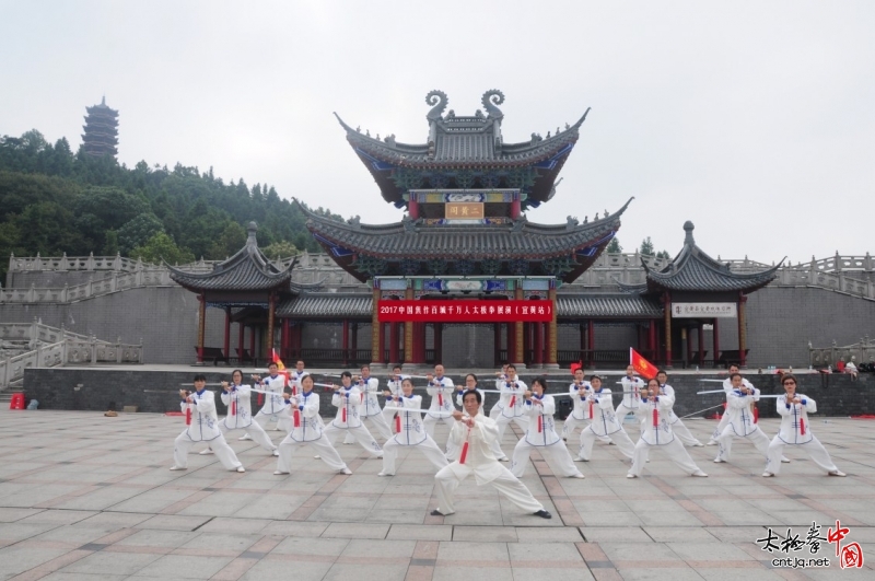 (中国太极拳网报道)2017年9月3日,江西省宜黄县卓望山公园秋高气爽,人声鼎沸,热闹非凡,来自陈家沟天才太极院的王清富老师在此组织自己的学员开展百城千万人太极拳展演活动。王清富老师带领学员演练了陈式太极拳新架缠丝功、新架十八式、老架一路、陈式太极剑49式,精彩的表演博得阵阵喝彩声,宜黄县政协王勇和副主席、钟华副主席、冯志榕副主席等领导参加了此次活动。