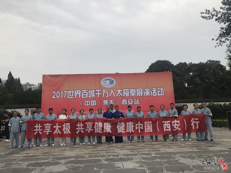 (中国太极拳网报道)共享太极,共享文明,健康中国西安行。2017年9月1日,2017百城千万人太极拳展演活动在陈家沟正式拉开序幕。全球各地纷纷响应,踊跃加入到活动中来。西安云之手武学堂积极参与,组织几十名太极拳爱好者在主会场小雁塔开展2017年世界百城千万人太极拳西安站的展演活动,助力一赛一节,推动太极拳的普及与发展,声势浩大,影响深远!