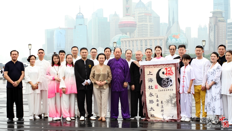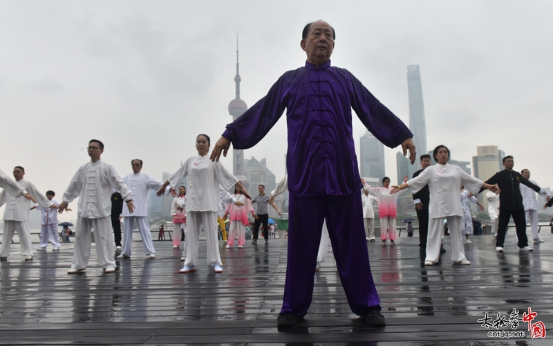 活动当天,上海忽然下起了大雨。杜永胜老师带领的太极拳爱好者们,不畏风雨,依然在雨中进行演练。杜老师表示:希望更多的人参与进来,练习太极拳,为弘扬太极文化、普及太极拳运动,助力健康中国,早日实现中国梦而拼搏奋进。