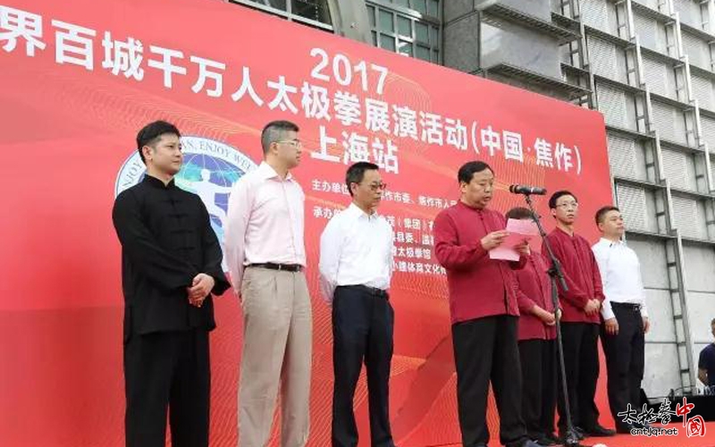 刚柔并济的太极拳,传承数百年,风靡全世界。一招一式,徐缓有力,武侠风范扑面而来。2017年9月10日上午,300余名拳友在上海市著名地标420.5米高的金茂大厦移步运气,共同见证了“”2017世界百城千万人太极拳展演活动上海站“”启动仪式的举行。为响应中共中央、国务院印发的《“健康中国2030”规划纲要》提出的“全运惠民,健康中国”的理念,焦作市委、市政府以“共享太极,共享健康”为主题,举办了本次2017世界百城千万人太极拳展演活动。此次活动9月1日在太极拳发源地陈家沟启动,将在17天内经过26个国家,195个城市,预计参演人数高达1000万人。