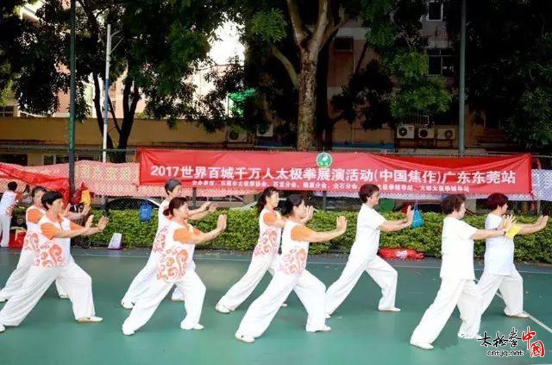 据悉,该场活动由东莞市太极拳协会携企石太极拳分会、石排康乐太极拳协会、太极拳南方推广中心共同为响应2017世界百城千万人演练太极拳展演活动而举办。东莞市太极拳协会有1000多名会员,在各镇区均设有分会和辅导站。在该两场活动举行之前,协会已经于9月9日在石排山公园,于9月11日在塘厦体育馆等组织举办了多场展演,参加展演的总人数达1000余人。