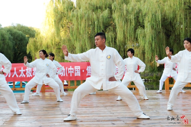 (中国太极拳网报道)9月15日,百城千万人“ 共享太极 共享文明 健康中国(呼市)行”大型太极展演活动正式启动,在王战国太极院呼市分会会长申亚丰的带领下,由王战国太极院呼市分会弟子一百余名太极爱好者组成展演队伍,在呼市满都海公园隆重举行太极拳展演活动。