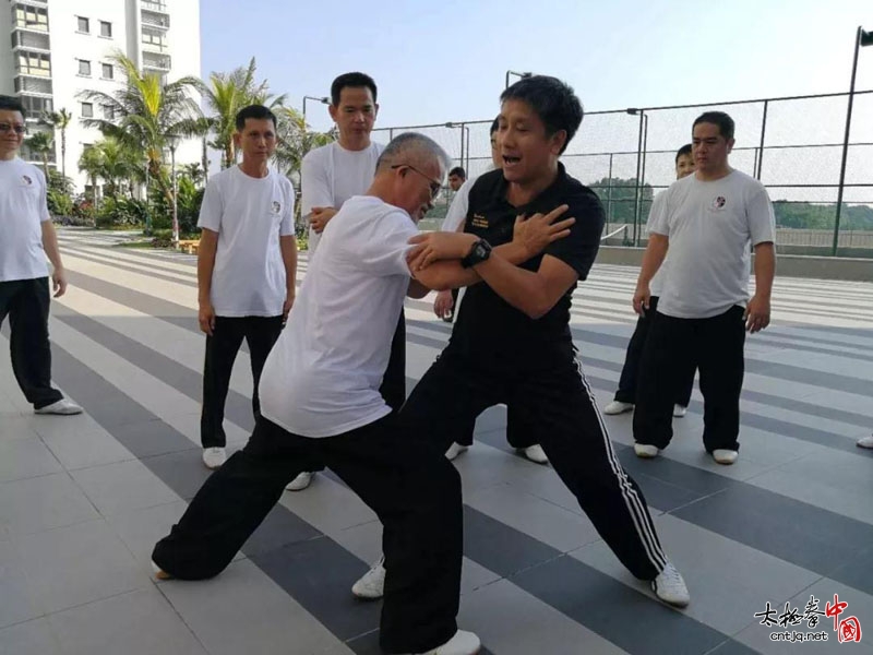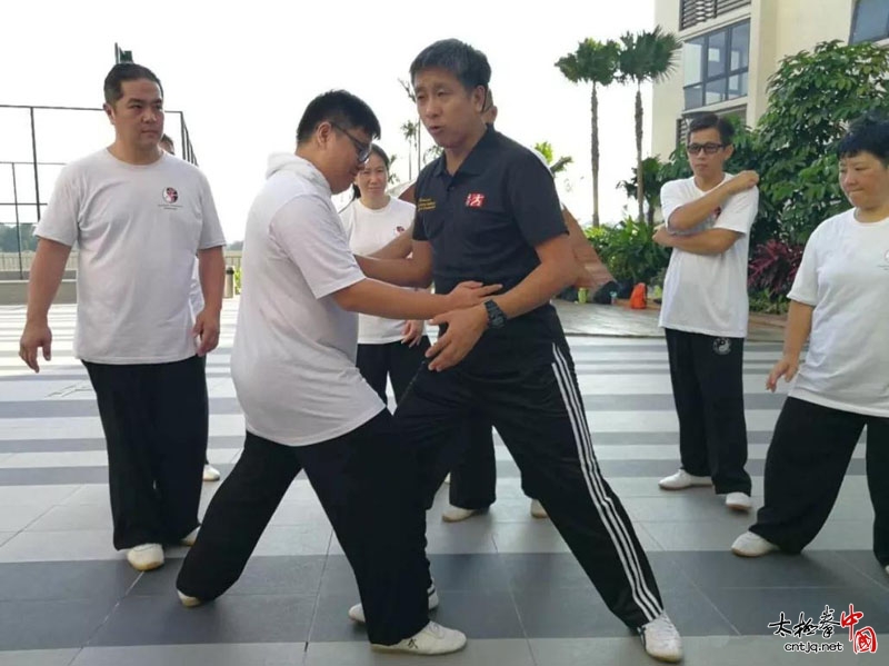 朱向前老师认真的教授马来西亚的弟子们习练太极推手