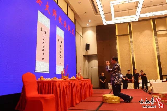 新入门弟子弟子依次递拜师帖、敬拜师茶,王西安大师为众弟子颁发传承书、批弟子服