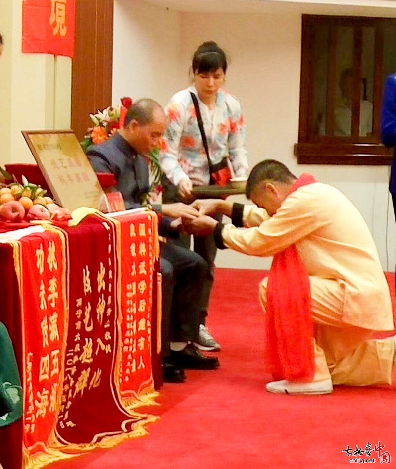 新弟子代表韦昌雄发言表态,今日能够觅得良师,拜入老师门下,加入太极拳这个大家庭里,感到无比的荣幸。以后必当恪守门规祖训,努力修行,不负师父厚望,尽心竭力传承太极拳,将太极拳发扬光大。