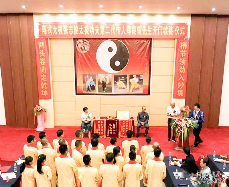 董玉群、谢启鑫、缪艳、黄永远、何进强、朱克勇、梁家初、颜正德、钟燕容、黄小妮、修玉杰、韦昌雄、韦文店、林国猛、江林钊、黄永清、徐卫晟、曾挺、李明旭、黄润国、周易静、韦婥璘等二十二名太极拳爱好者有幸拜入郑良锭老师门下,正式成为陈式太极拳第十四代传人、张志俊功夫第三代传人。