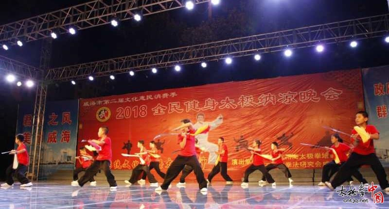 (中国太极拳网报道)威海陈相海太极拳培训中心(王西安拳法研究会威海分会),8月17日晚7点在市政府广场举办了一场太极纳凉晚会。“以弘扬传统文化,传播太极精神”为主题,庆祝全国第十个全民健身日,进行了一场太极系列表演,其目的就是通过本次活动让市区居民进一步了解太极、认识太极、分享太极给人们带来的健康和快乐。