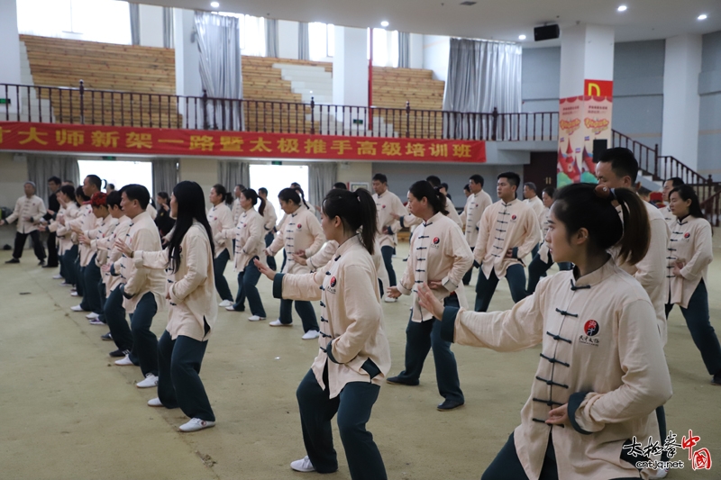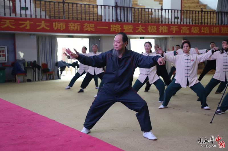 (中国太极拳网报道)12月6日,国家级非物质文化遗产陈氏太极拳代表性传承人朱天才大师“2018新架一路暨太极推手高级培训班“”在温县海旺弘亚大酒店开班。来自全国各地的八十多名太极拳爱好者前来参加培训。