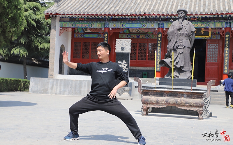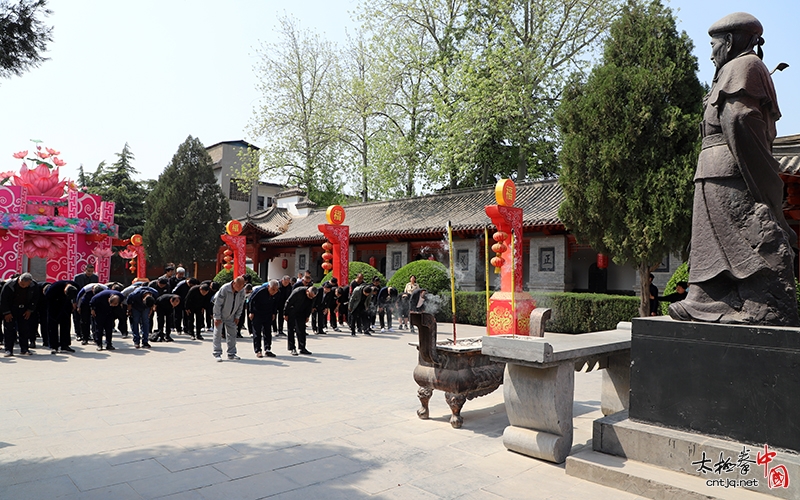 王长江老师率众弟子及同仁向太极拳祖师陈王廷宗师行三鞠躬礼