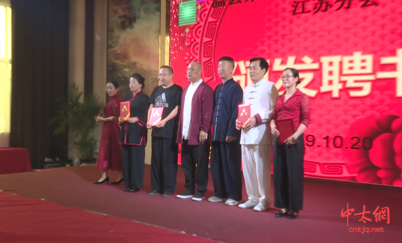 仪式上,温县朱老虎陈式太极拳研究会会长朱堡垒向陈二飞老师颁发温县朱老虎陈式太极拳研究会江苏分会牌匾。并由多位陈家沟太极拳师向温县朱老虎陈式太极拳研究会江苏分会成员颁发聘书并祝贺。