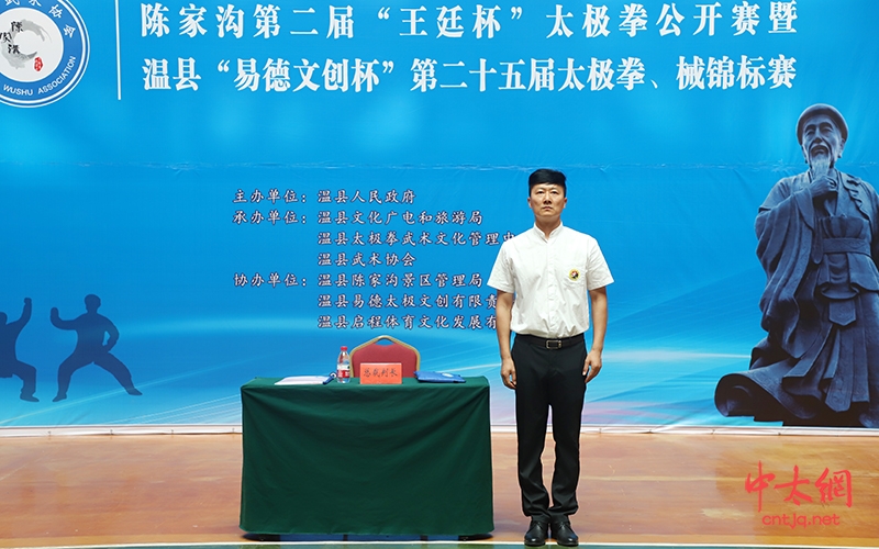 (中国太极拳网报道)2020年7月18日,陈家沟第二届“王廷杯”太极拳公开赛暨温县“易德文创杯”第二十五届太极拳、械锦标赛于太极拳发源地温县陈家沟太极拳文化国际交流中心隆重开幕。据了解,此次赛事为期两天,来自温县各个武馆学校的540余名运动员将在发源地的擂台上展开激烈的角逐。开幕式由温县太极拳武术文化管理中心负责人任海林主持。