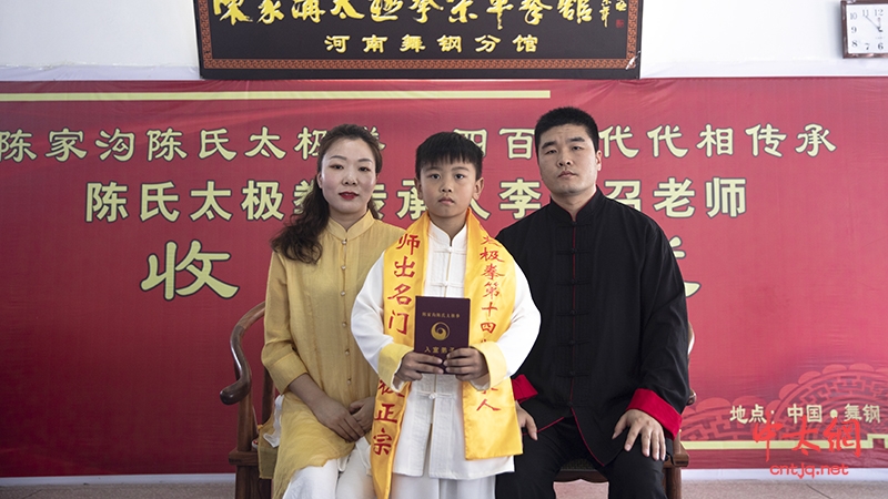 (中国太极拳网报道)十月一日,喜逢“双节”,陈式太极拳第十三代传承人李俊召老师收徒仪式在舞钢市李俊召武术学校八台校区隆重举行!来自舞钢市的刁俊涛、杨兴亮、苗恩润、韩尚昊、姬羽鑫、刘沛源、孙恩熙、李翊轩等八名太极拳爱好者经过重重考验,以虔敬之心,敬拜李俊召老师为师,正式成为陈式太极拳第十四代传承人。