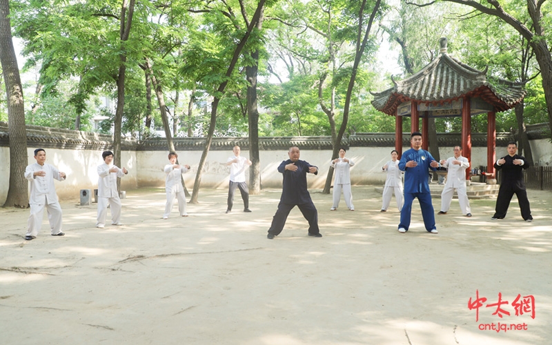 在太极拳发源地陈家沟,陈建雷老师及学员受到陈式太极拳代表性传承人、世通太极研究会陈军团老师的热情接待。一行20余人先后到陈军团老师家中、世通太极研究会、太极拳祖祠、杨露禅学拳处参观交流,研学之旅行程丰富。
