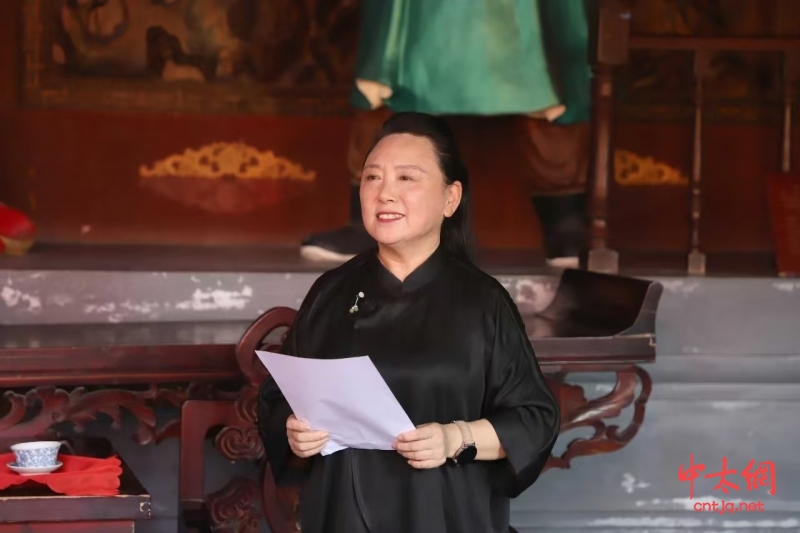 随后弟子们依次上前向师父行拜师礼,师父回帖并为弟子佩戴传承人绶带,弟子们依次向师父敬茶。