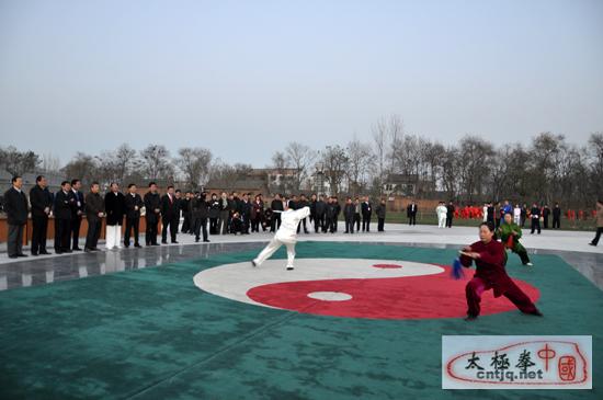 陈家沟太极拳名师陈大冠、“八大天王”之陈自强(前排黑衣者)表演太极拳