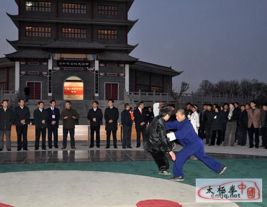 2010年12月2日下午,河南省省委书记、省人大常委会主任卢展工在焦作市委书记路国贤、市长孙立坤、温县县委书记魏曰高、县长李英杰的陪同下,视察太极拳发源地陈家沟,并观看了王西安、陈桂珍、陈照森、和有禄、陈冲、王战军、陈春爱、陈自强、陈大冠、王伟、郑彩霞等太极拳师的太极拳械及推手表演。