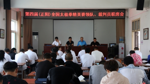 (中国太极拳网报道)5月2日,第四届(正阳)全国太极拳精英赛领队、裁判员联席会今日在河南正阳县隆重举行。来自全国各地多个省市,百余支支代表队的领队和教练员参加了此