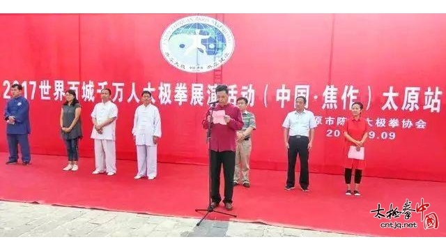 (中国太极拳网报道)9月9日上午,2017年世界百城千万人太极拳展演活动太原站启动仪式在太原市双塔寺广场举行,当地共有1000余名太极拳爱好者参加启动仪式,集中演练了太极