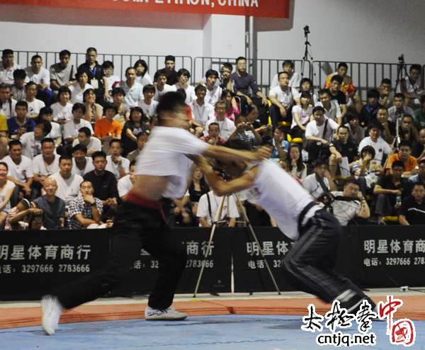 第六届中国·焦作国际太极拳交流大赛太极推手在市体育中心跆拳道馆举行,场场观众爆满。运动员个个精神抖擞,以刚柔相济的太极推手原则和四两拨千斤的技巧,使比赛极具观赏性,场内掌声、叫好声不断。